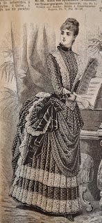 A tu jeszcze dodatkowo z koronkowym krawacikiem, znowu Bazar 1886, tym razem wg nr 58 "Kravatte aus Crepe und Spitze - po lewej stronie na oryginalnym rysunku powyżej.